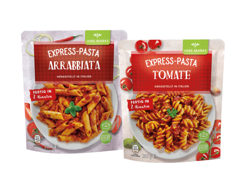 Express Pasta are the innovation in the shelf stable ready meal shelf. They are naturally delicious, without artificial preservatives, colourings and flavourings and contain original Italian pasta for the authentic Italian taste. The product innovation is produced in the north of Italy. They are currently available in the varieties Arrabbiata, Tomato-Mozarella, Tomato Basil, Cheese Cream and Mushroom Cream. In addition, other dishes such as express rice or risotto are also in the Hügli range, in line with the motto: "We offer a quick solution for every taste when spontaneous hunger strikes."