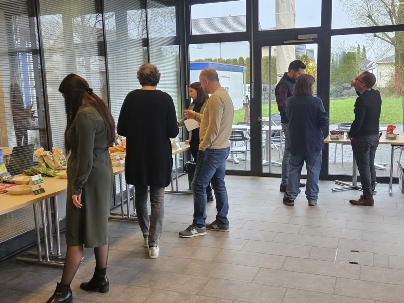 The snacks on display for our customers were all made with Hügli Food Industry spices. The idea behind these internal tastings is to ensure that all employees at the respective location recognise their achievements in the final end products. After all, many employees from different teams are ultimately involved in a successful product. This event therefore not only served as an opportunity to explore the diversity of flavours, but also to show the importance of our products. Such tastings raise awareness of where Hügli snack mixes can be found.