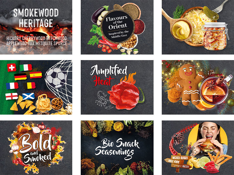 Our tasting boxes offer snack manufacturers the unique opportunity to discover exciting and trend-setting flavour experiences. Concepts such as Smokewood Heritage bring the authentic flavour of wood smoke to modern snacks, while Amplified Heat offers exceptional heat flavours for the bolder flavour lovers. Seasonal concepts such as Wonderful Christmas or Flavours of Euro 2024 bring exciting flavours directly into the snack world. Each of these concepts has been developed on the basis of extensive market and trend analyses and ensures that the needs and wishes of modern consumers are taken into account.